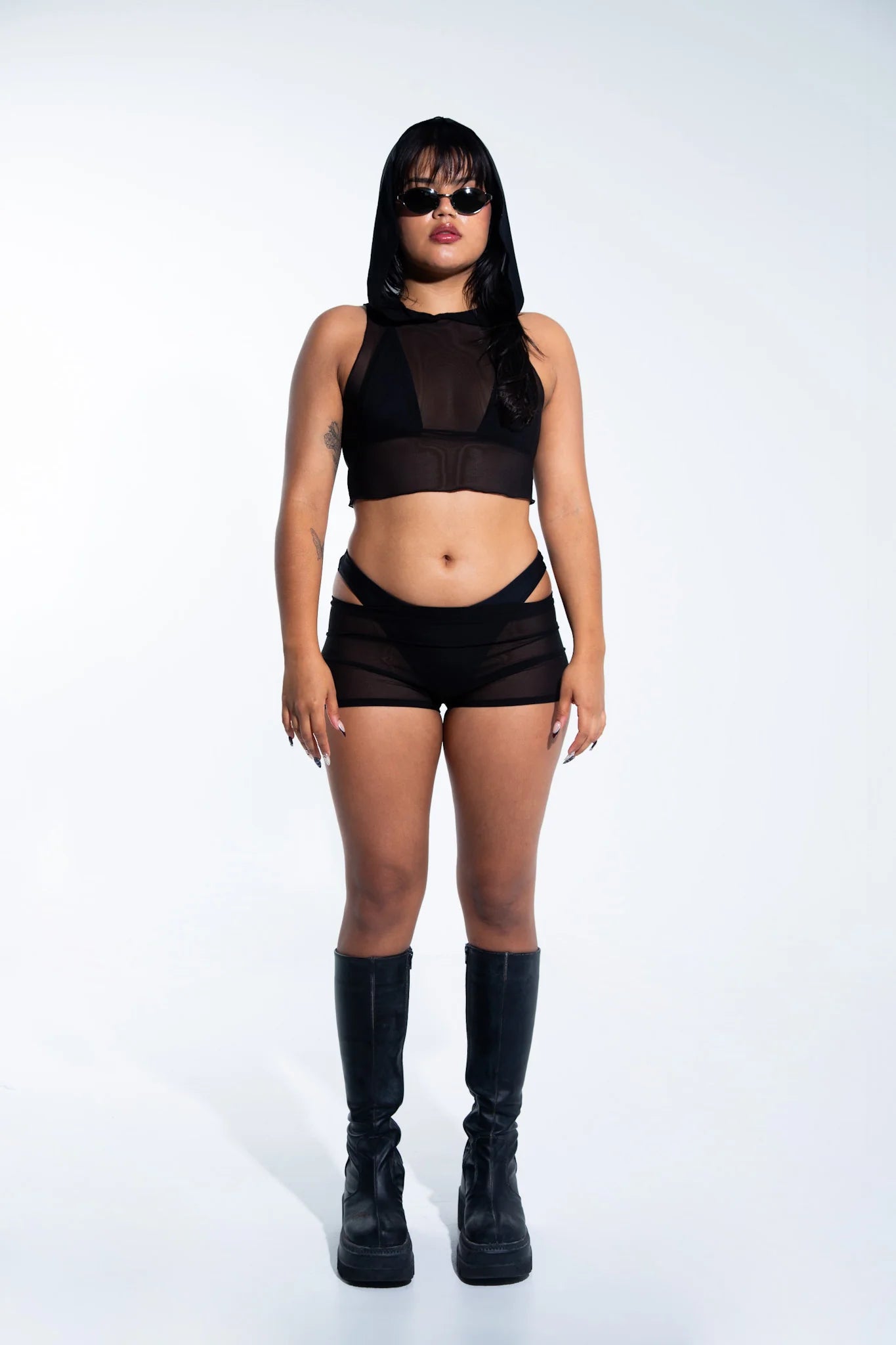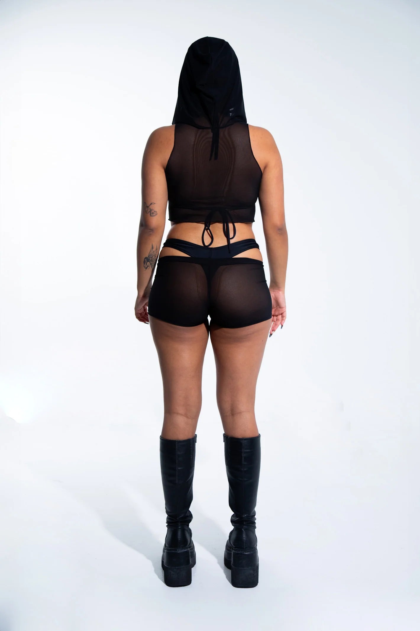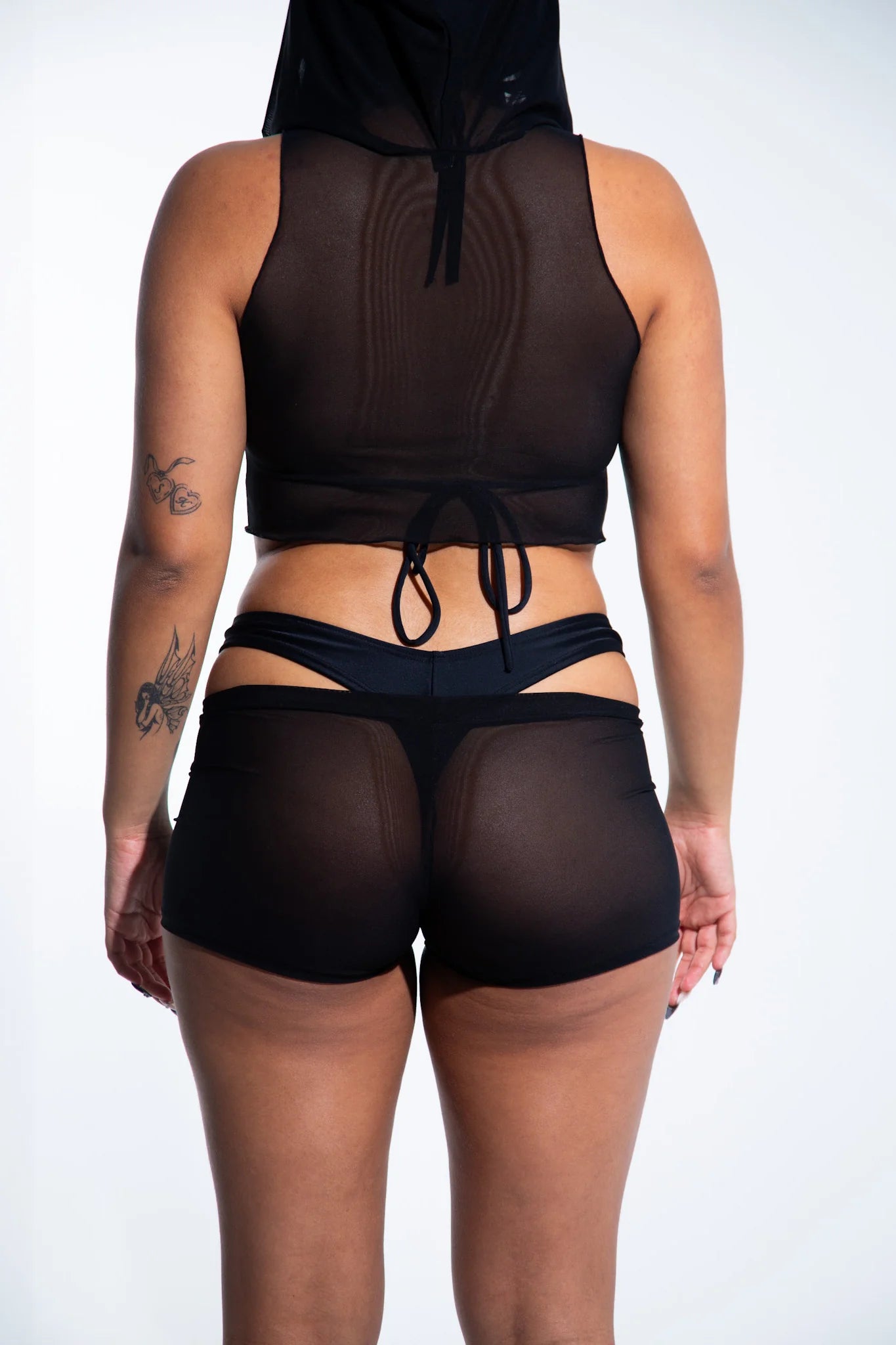 Rave with mi Gente – Kurzes Netztop mit Kapuze – Schwarz