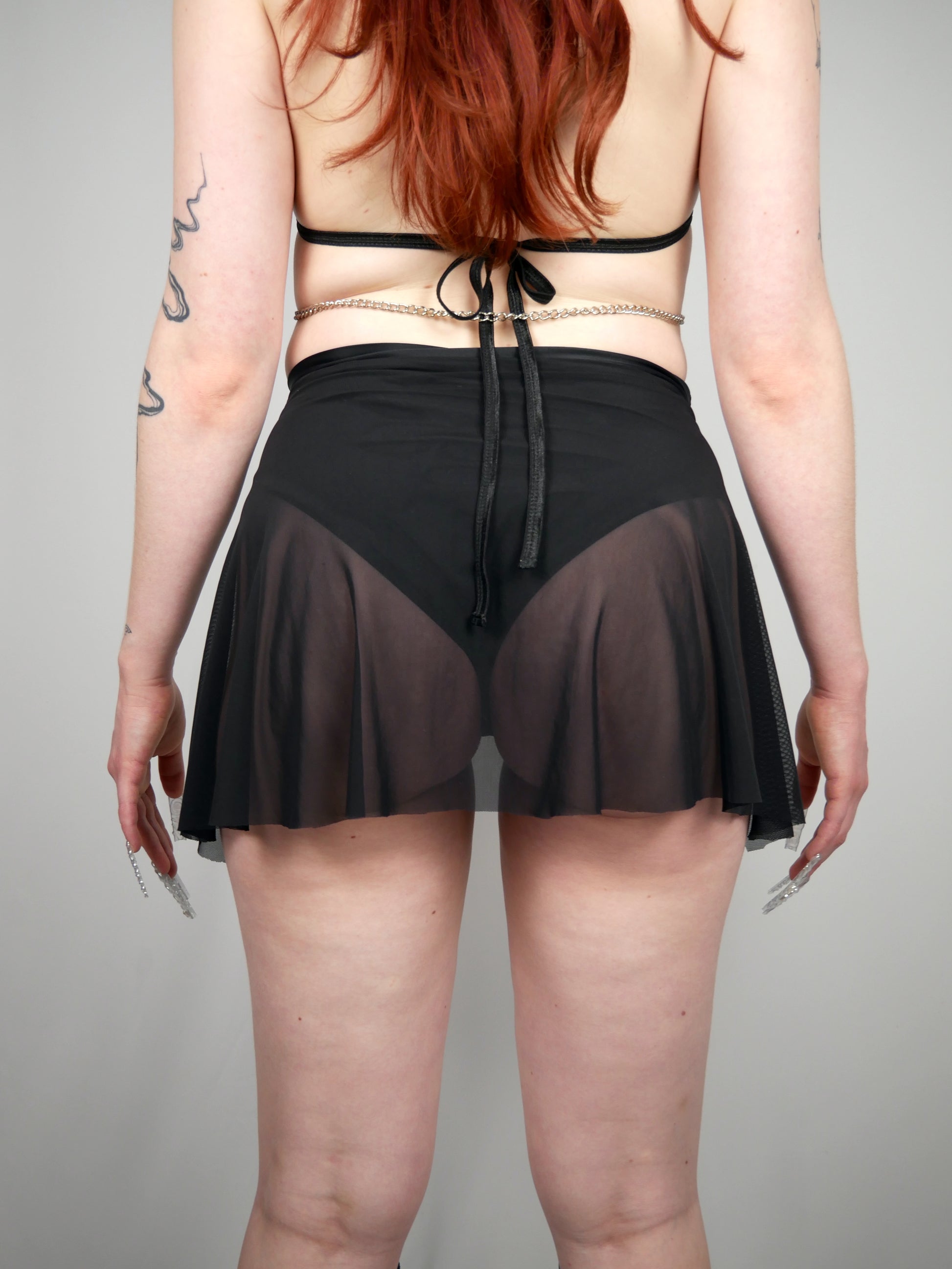 Party-ready and picture-perfect. These black, shiny shorts with a mesh skirt give you just that touch of main character energy . Shiny bottom, flowy top – comfy and hot. Perfect for raves, festivals, or any outfit you'd like to rock.