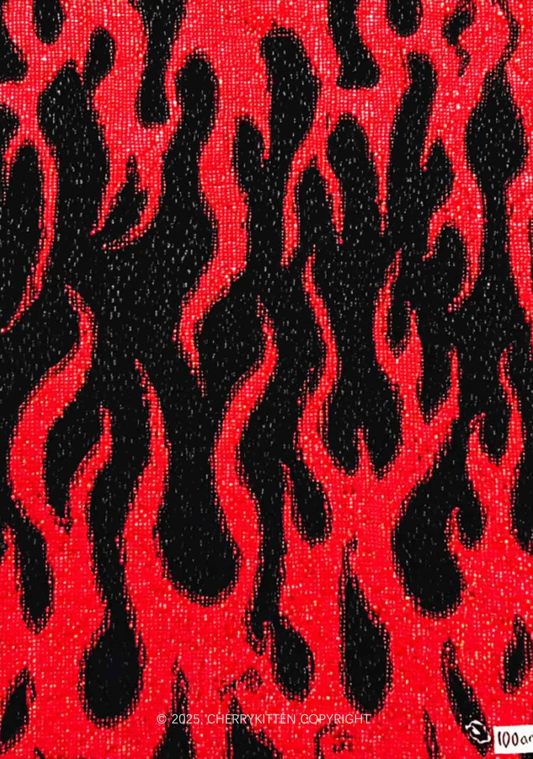 Hot. Letterlijk. Deze zwarte mesh tanktop met rode vlammen geeft pure main stage energy. Licht doorschijnend en gemaakt voor zweterige dansvloeren. Draag ’m solo, over een harness of gewoon omdat je zin hebt om eruit te zien alsof je in brand staat (maar dan cute).