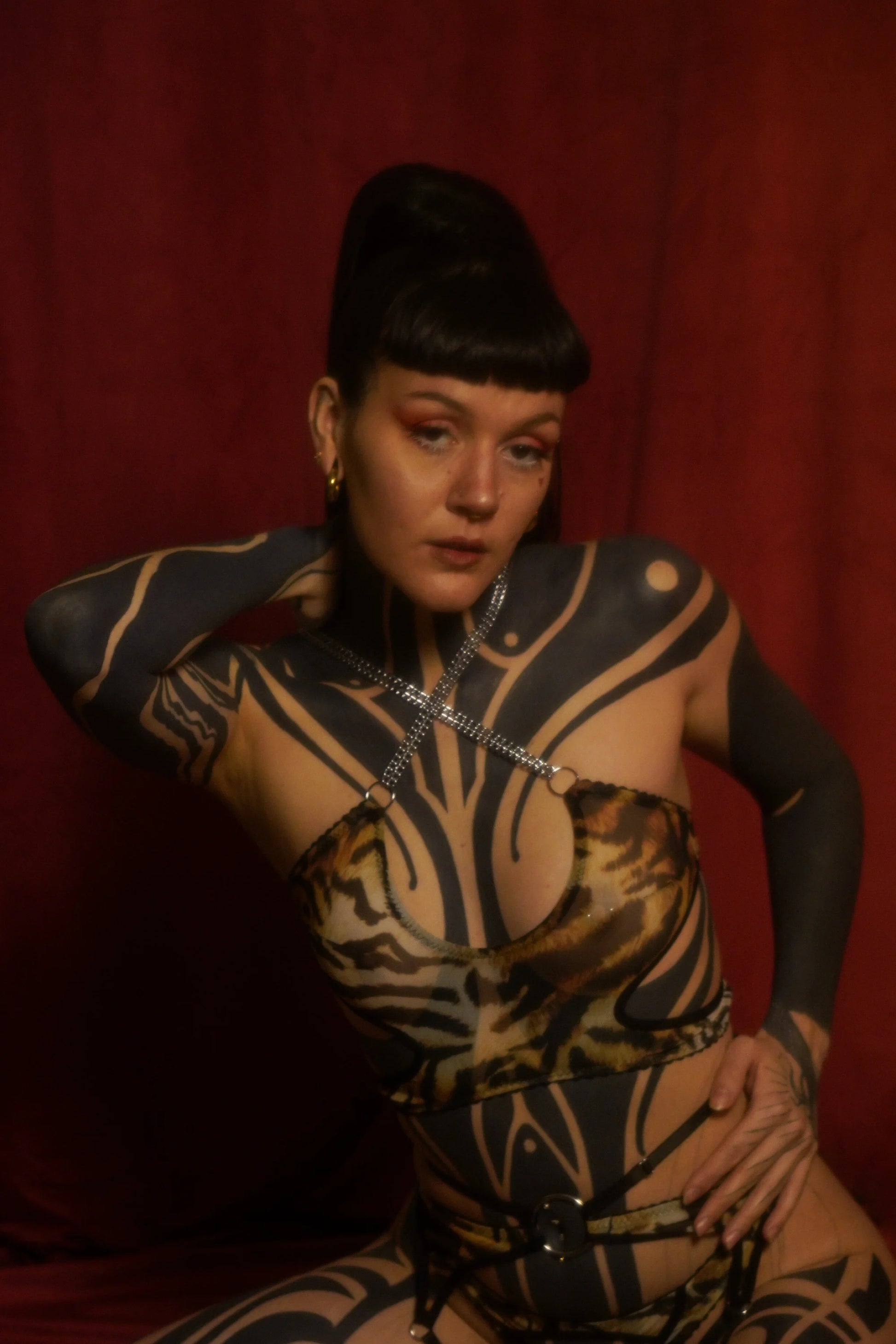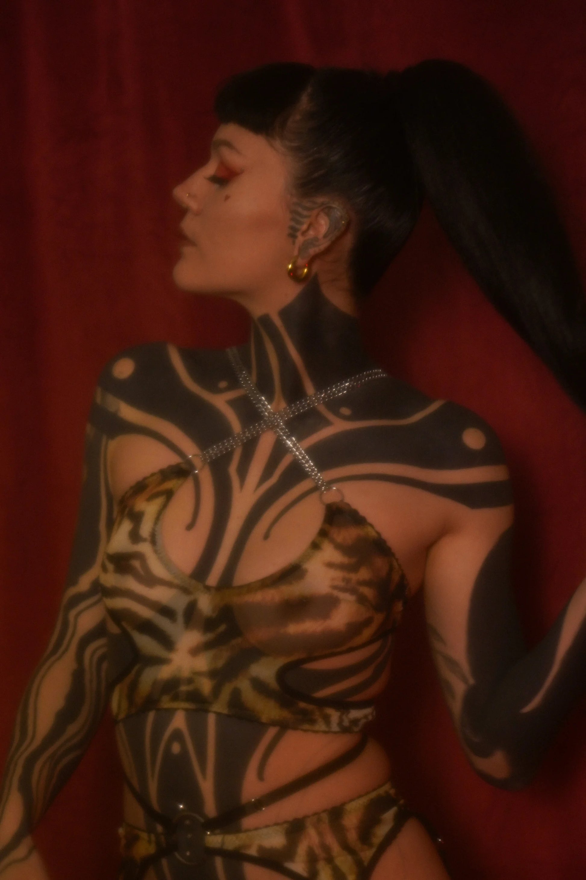 Kat Maunz - Side cut out top zebra print mesh - Bruin